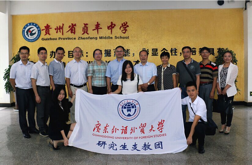 2017年4月,黔西南州教育局特意回访我校,送来感谢信和锦旗致谢。据了解,2016年黔西南州全州高考英语单科成绩平均上升10.37分,一本上线人数翻一番,广外研究生支教团在贞丰中学有声有色地开展全英课堂、举办特色英语口语角、周末走访留守家庭等工作,获得广泛好评。