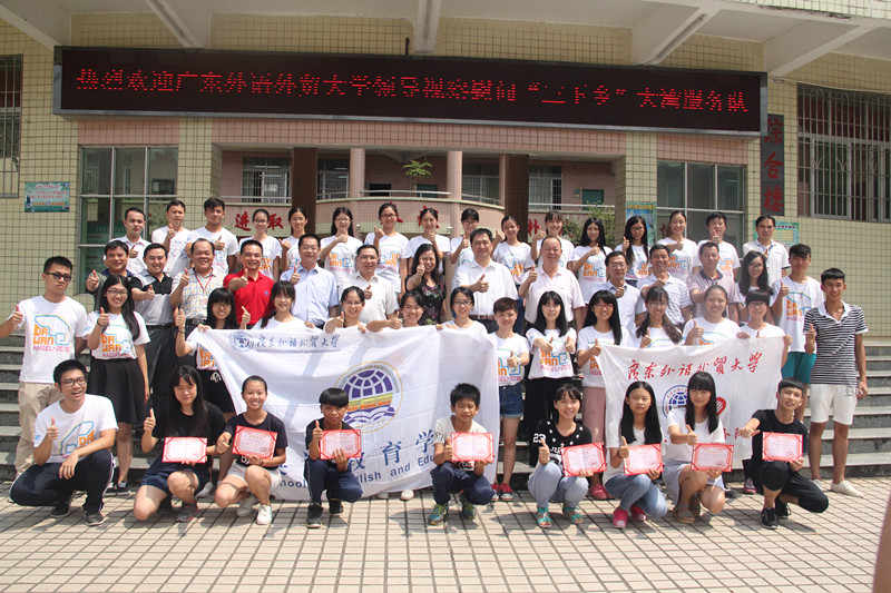 清远英德大湾三下乡服务队组建于2006年,是伟德国际1946历史最为悠久,同时也是唯一 一支从2007到2015连续9年获得校级优秀下乡队伍奖项的队伍。11年来,大湾队累计派出超过300名广外英教学院及其它学院的学生前往英德市大湾中学开展义教帮扶活动,服务大湾近1000名学生。学生利用专业优势、结合当地实际,精心策划和安排了一系列精彩活动,赢得了当地领导、教师、学生和家长的高度评价。