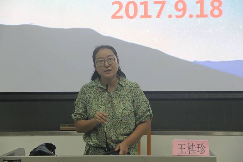 讲座开始时,主持人黄辉简要介绍了王桂珍教授,并且高度赞扬了王桂珍教授在英语语音语调研究领域所取得的成就。