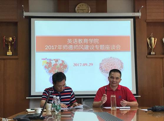 2017年9月29日下午,伟德国际1946于南院系办公楼245会议室召开了主题为“立德树人,做好学生引路人”的师德师风建设专题座谈会。会议由学院党委书记林绍雄主持,院长董金伟、副院长陈金诗、各系部骨干教师代表及办公室的同志们参加了会议。