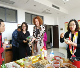 首先,教师们纷纷报名参加,有些老师因为公事无法参加活动,却非常有心,提早把特色小吃带到了职工小家,董金伟院长带来两罐两味花生米,朱三毛老师带来两袋家乡芝麻糖,徐昶斌副书记带来梅州黄粄,这些都独具特色。