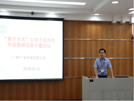 5月12日,由伟德国际1946,Bevictor伟德“‘教学学术’引领下的高校外语教师发展科研创新团队”在北校区第九教学楼丝纺讲堂举办了“‘教学学术’引领下的高校外语教师发展专题论坛”。广外科研处处长陈彦辉教授、伟德国际1946院长董金伟教授、党委书记林绍雄、副院长吴岩教授以及团队带头人权立宏教授和团队成员出席了论坛开幕式。伟德国际1946的部分师生以及来自其他兄弟院校的同行参加了论坛。