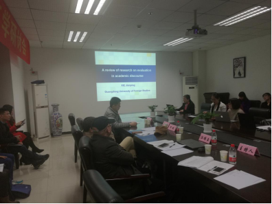 24日下午,参会代表分成三个分会场进行论文宣读和讨论。点评专家及其他代表围绕本次研讨会的各项议题以及论文内容进行了热烈的讨论。熊涛教授做了“国际汉语教材如何呈现中国文化:批判性社会符号学分析”的报告,讨论了汉语教材对中华文化内容及其与西方文化关系的处理问题,并作为第一分会场的点评专家对该会场的论文进行了深入的点评。王晓雯副教授做了题为“Discourse, power, and mitigation: An analysis of three institutional discourses in Hong Kong and UK ”的报告,谢剑萍副教授做了题为“学术话语中的评价研究综述 ”的报告。广外三位老师在第一分会场的组团发言,展现了学院科研发展的团队精神,给与会专家、同仁留下了深刻的印象。