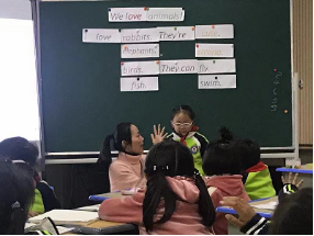 当天下午,肖建芳、江健两位博士马不停蹄赶赴滁州南谯逸夫小学,继续观摩了一堂由张静老师执教的综合英语展示课:We love animals。评课反思后肖建芳博士还进行了题为“Kiss and LARA: Teaching English more efficiently”的讲座。为这所新开展综合英语教学课题实验的学校教师答疑解惑。南谯区英语教研员方老师以及南谯区教研室主任董雪芹全程参与了研讨活动。当晚,肖建芳、江健博士与南谯区教体局李局长、逸夫小学徐校长等多位领导洽谈综合英语教学课题在滁州的进一步发展及其途径,感谢地方教育局领导和实验学校给予综合英语教学大力支持,希望能够整合多方资源,进一步加强合作,让更多孩子从综合英语教学课题受益。