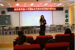 11月30日在凤阳实验小学举办的国际合作综合英语教学研讨会,还邀请了凤阳县教体局教研室王金主任、彭金玲英语教研员以及凤阳工小、西华路小学、小岗学校校长和凤阳实验小学、凤阳工小所有英语教师参加。