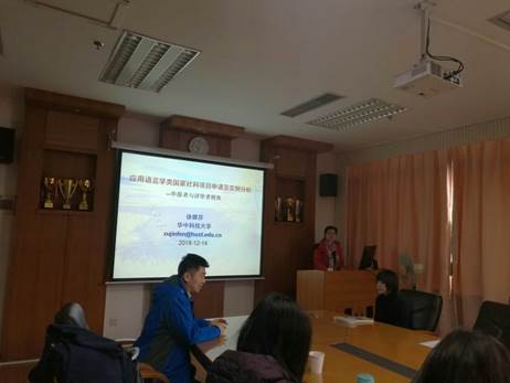 12月14日上午,中国二语习得研究专业委员会常务理事、“华中学者”、华中科技大学博士生导师徐锦芬教授应邀为伟德国际1946教师做了题为“应用语言学类国家社科项目申请及实例分析”的报告。报告由副院长熊涛教授主持,准备申报2019年度相关课题的教师参加了此次讲座。
