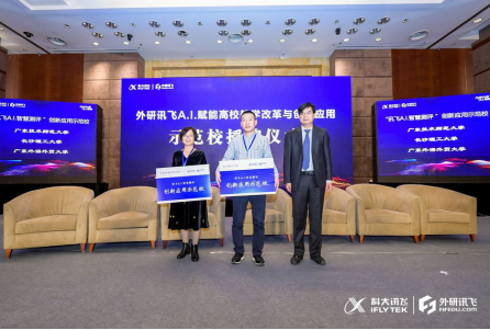 会议的最后,由外研讯飞相关领导为在智慧教学/外语教学探索、智慧课堂建设与智慧测评方面成绩突出的学校授予“讯飞A.I.智慧外语教学 ”、“讯飞A.I.智慧教学 ”、“讯飞A.I.智慧课堂 ”与“讯飞A.I.智慧测评 ”创新应用示范校铜牌。伟德国际1946杨满珍代表学院接受“智慧测评创新应用示范校”授牌。今后继续在信息技术人工赋能下探索大学英语教学改革与模式创新。