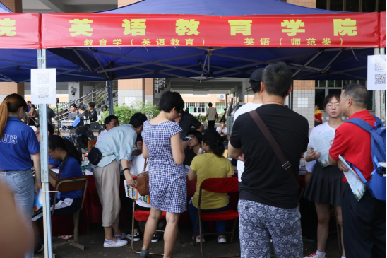 活动过程中,不少考生及家长前来伟德国际1946摊位进行咨询,摊位内外十分热闹。学院领导和老师一直向他们耐心地解答疑惑,例如教育学(英语教育)专业与英语(师范类)专业的具体区别等,并向他们详细介绍了教育学院的国际合作项目、就业去向、专业升学前景等,让他们对教育学院有了更好的认识。