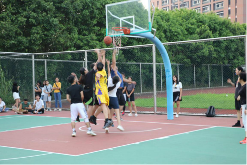 短暂休息过后,双方进行了战术分析和出场队员补换。比赛进入下半场,比拼依旧激烈,教师队伍渐入佳境,老师们一次又一次拿下篮板,场外不断传来“好球!”的喝彩。学生队伍沉着应对,随机应变,每一次的进攻防守都扣人心弦。师生之间上演着一次次精彩对决。