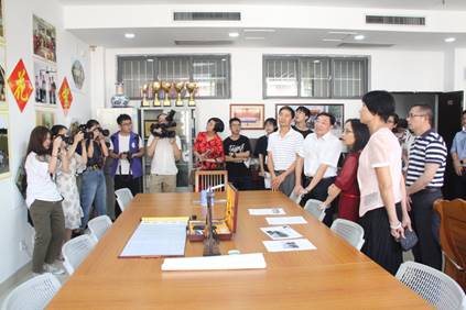 谢岩梅一行观看伟德国际1946工会活动图片展