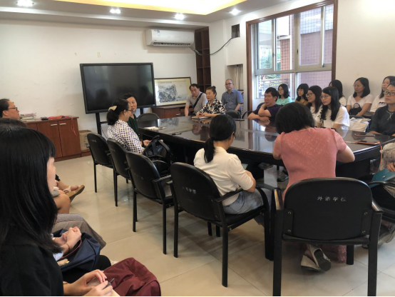 张亚娟主任接着邀请广外外校初中部英语组教师代表王佳琼老师和班主任代表黄颖老师给11名实习生分享了自己经过多年教学取得的一些心得体会,让实习生初步了解自己即将面临的工作挑战以及需要遵循的一些教师规范。在两位代表教师发言完毕后,张亚娟主任介绍了即将指导伟德国际1946实习生的11位初二级班主任和9位初二级英语教师,并对后期的实习工作进行了基本的安排。