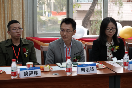 06级校友代表、现任广州市二中苏元实验学校级长的何洁铵深情回忆了在校学习的时光,感恩老师们的敦敦教诲,他一直密切关注着学院的动态和老师、校友们的情况,他表示正是学院的悉心栽培增强了校友们在工作中的自信和底气。