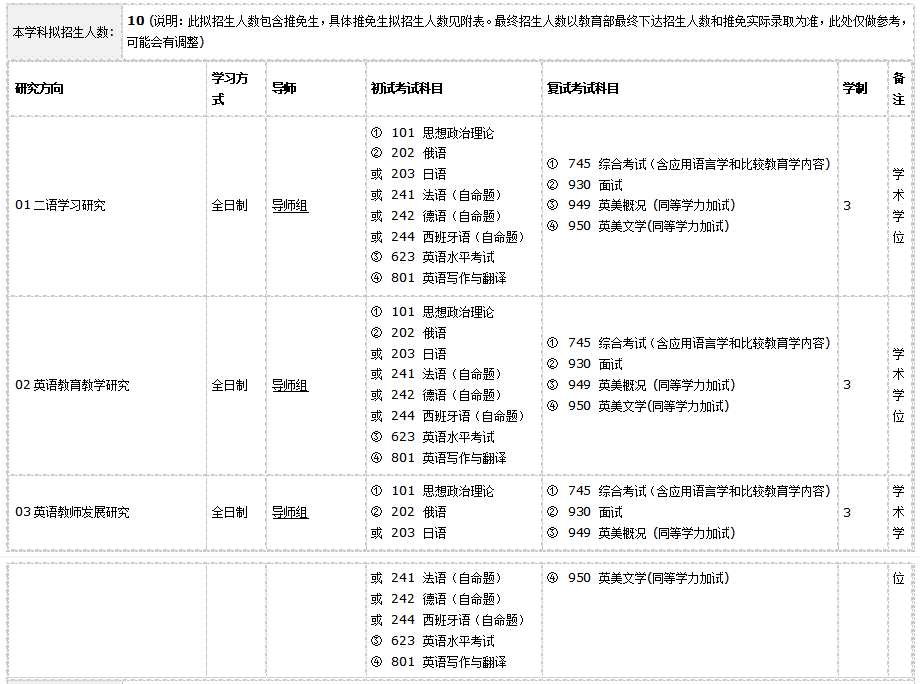 三、招生目录