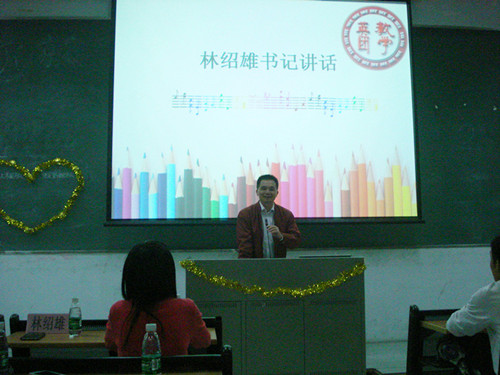 7点15分,大会准时开始,在主持人对本次三下乡概况做了简短的介绍后,林绍雄书记发表了讲话。林书记首先表明三下乡是很有意义的活动工作,并告诉同学们“三下乡,广外是走在前沿的”。随后,林书记追忆起在他带领下乡的过程中发生的点点滴滴,如早在1996年,他向清远教育局征询,希望找到能提供下乡服务支教的学校时所遭到的挫折,又如他亲自带领下乡时与学生一起走过乡间泥泞的小路,一起生火做饭……接着,林书记阐述了三下乡支教活动对同学的特别意义,又对学院三下乡活动提出了发展方向,分别是“扩大服务面,扩大参与面,增加服务点,增加建设服务实践基地”。最后,林书记殷切地希望在场的每一位同学都能积极参加三下乡活动,勇于奉献,为乡村地区带去正能量,做有上进心有要求有形象有素养的人。