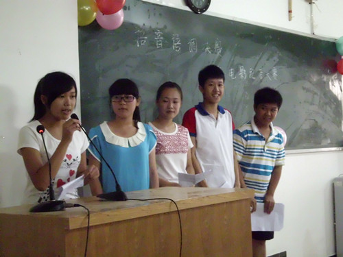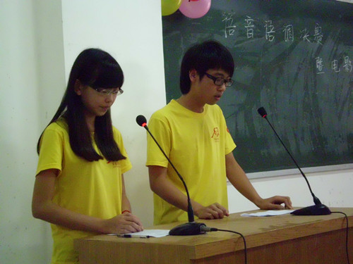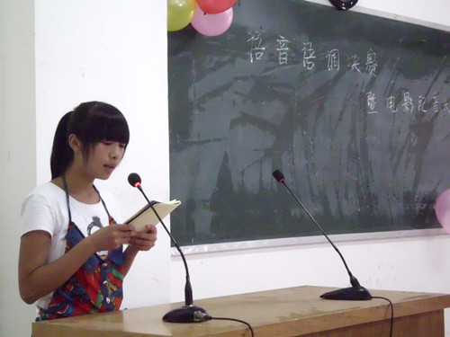 为了激发学生英语学习的兴趣,使学生的英语语音和口语水平进一步提高,7月25日,广外大“水粤侗天”服务队在三江中学阶梯教室举行了一场以“语”你同行,“音”你精彩为主题的语音语调大赛决赛暨电影配音大赛。先经过班级内部的筛选,每班选出5名优秀的学生参赛。英语语音语调比赛主要考查学生发音的准确、清晰,语调是否自然流畅;学生朗读时是否能恰当地运用意群断句,连贯通读。