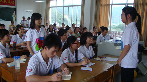 此次英语骨干教师培训,是今年广外大水粤侗天服务队的又一新的尝试和创举。年轻的它本着“提升一个英语老师,让更多学生受惠”的宗旨,赢得包括三江教育局和三江中学校长在内的高度重视。服务队带队老师当任了教师培训的主讲。她们采用任务型的新型教学方式,让教师学员亲手参与到课堂教学中。教师说课大赛就是他们学习成果的最终展示。教师说课大赛采用全英文的说课形式,把各个小组的教学计划展示给现场的领导评委、和学生。教师学员表明花费假期时间很值得。教育局吴局长也称赞这种教师培训的形式,说它把新的教学理念带到了三江,对提高三江英语教师的教学水平的作用是不言而喻的。