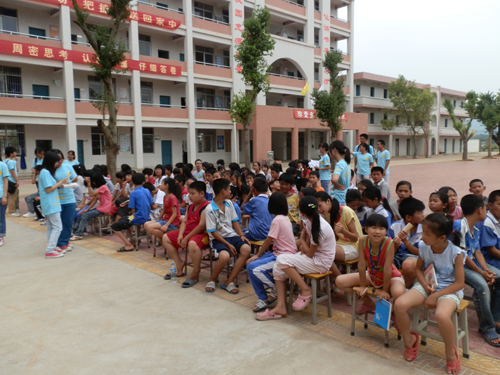 下午,首先是我们的班会。看着一个个渴望求知的眼睛,听着一句句探索知识的疑问,我们感到很欣慰,因为至少我们两个月的准备不会白费,再苦再累也都是值得的!接着便是我们重磅出击的开幕式!学生们早已经在开幕之前做好了自己观众的角色,各个翘首期待等着自己老师的表演。开幕式开始是望埠初级中学华校长发表重要讲话,讲话中我们可以感觉到望埠校方对我们的欢迎,同时队员也感到沉甸甸的责任感。而伟德国际1946何书记的一番讲话,更让望埠队的队员们感到我们代表的不只是一个三下乡队伍,而是整个伟德国际1946,Bevictor伟德,我们的一言一行将是广外学子的一个个剪影!接下来队员们热情洋溢的表演引来了学生们一阵阵的欢呼。而我们整组队员,也用我们的精彩表演诠释了什么是爱,什么是责任。