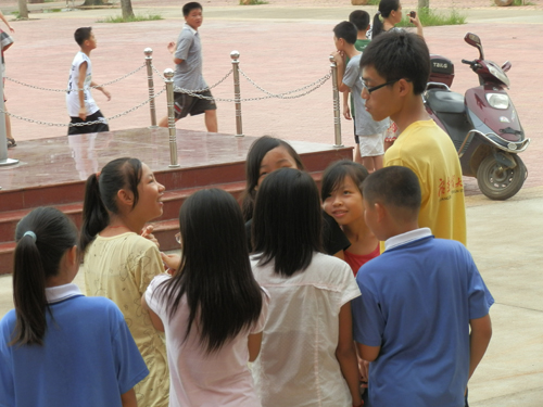 上午,我们的招生工作热火朝天地开展着。下乡的队员没有担心现场的冷场,因为她们有个忠实的粉丝团,那就是去年来过望埠队上过课的孩子们。一年不见,知心话的互诉,礼物的赠送,重逢的喜悦充斥着整个招生现场,是的,这就是望埠队员在望埠撒下的情种。看着自己去年教的学生一点点的成长起来,那种感觉,就像去年播种、今年结果一样,憧憬中带着喜悦。整个上午,烈日皱起了队员的眉头,却晒不掉大家脸上的欢乐。整个望埠队热并快乐着!