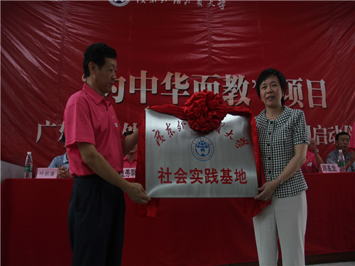 接着,我校党委副书记许国彬教授与丰顺县教育局陈秋远副局长签署了社会实践基地合作协议并举行了实践基地揭牌和夏令营服务队授旗仪式。