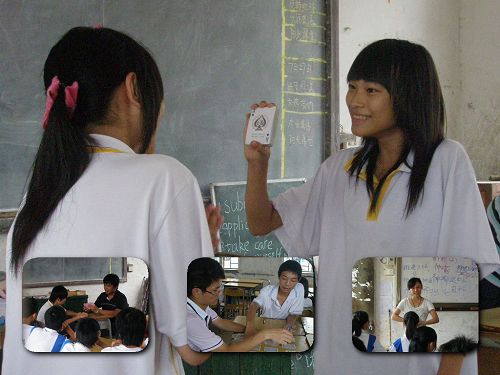 其中,清新早读是“梦之端”此次义教的一大特色。早读材料摒弃传统的课文教材,广泛收集题材,初中的有小故事,笑话,名人警句,高中的有诗歌,演讲稿,戏剧等。新颖的材料激起了学生的学习兴趣,而且老师也融入了音标的教授,及时地纠正学生的语音语调,使早读的效果得到了显著的提高。