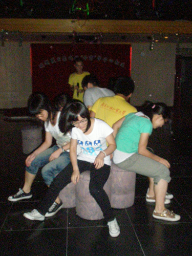 “抢凳子”使现场充满紧张气氛,猜词游戏使双方队员玩得不亦乐乎。