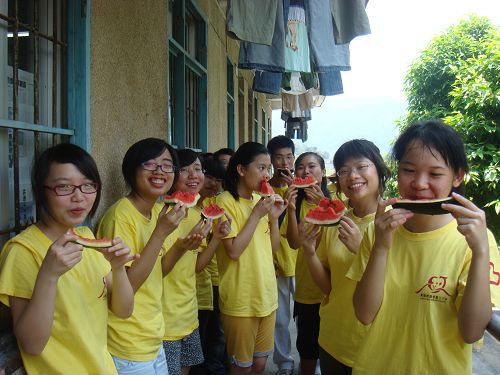 2008年7月15日13时,教育学院清远队三十一个穿着黄色队服的队员走下从大学城通往大湾的汽车,开始了清远英德大湾“三下乡”之旅。自此欢笑之声、忙碌之汗,甚至辛酸之泪洒满大湾中学美丽的校园。