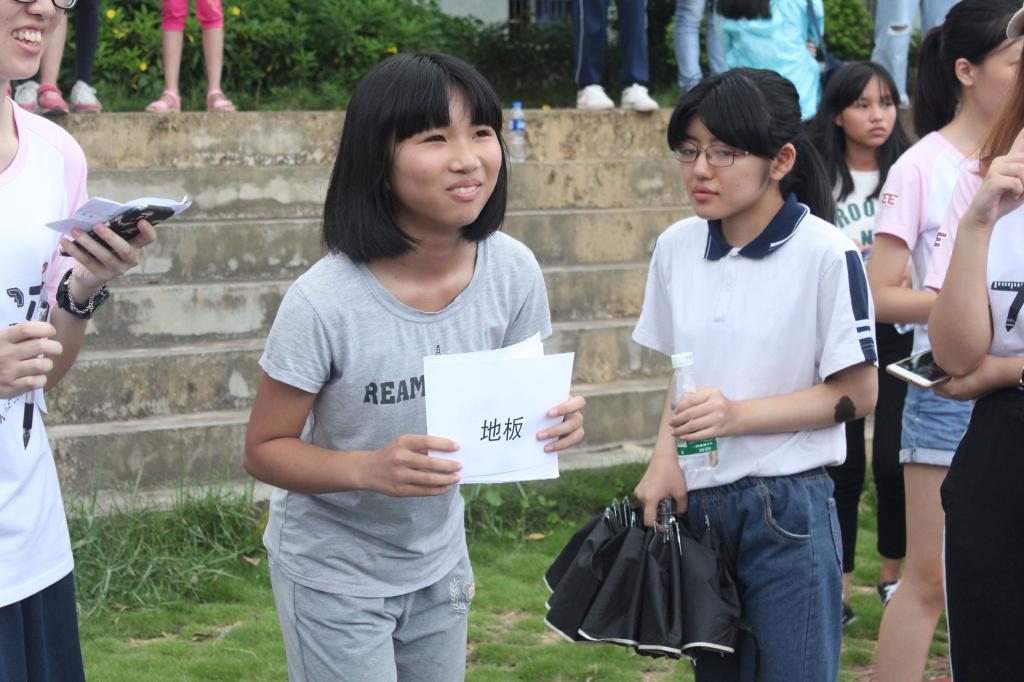 参加个人赛的学生们抱着“为班级争光”的集体荣誉感和“友谊第一,比赛第二”的体育精神,全身心地投入到比赛中,加上观众学生铺天盖地的呐喊助威,将整个趣味运动会的气氛推至高潮。首先是踩气球比赛,即踩爆系在对手脚踝上的气球,被踩爆气球的选手出局,直至场上只剩一人。经过激烈的联盟助攻、一对一角逐,4班的罗金凌反应迅速、身手敏捷、耐力充沛, 最终夺冠。紧接着是踢毽子。1班的江雪浩使出颠足球的功底,轻松便能够连续踢毽子,最终淘汰了其他选手。最后是转呼啦圈比赛。冠军是4班的杨千华。她不仅擅长用肚子,还能轻松地用小腿转呼啦圈,且持久力惊人,让在场的学生和大湾服务队的老师们看得目瞪口呆,拍案叫绝。