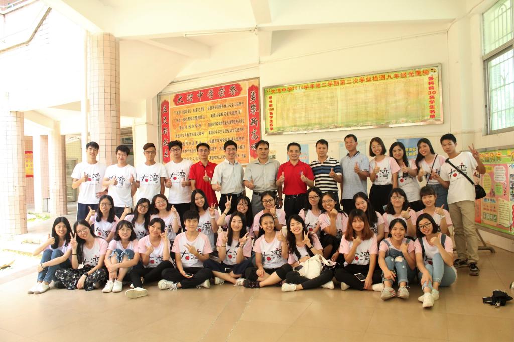 2017年7月16日,伟德国际1946党委书记林绍雄、党委副书记徐昶斌和优秀校友何洁铵莅临大湾中学慰问正在辛勤支教的队员们,并受到大湾中学副校长刘国林、万锦灵的热情招待。