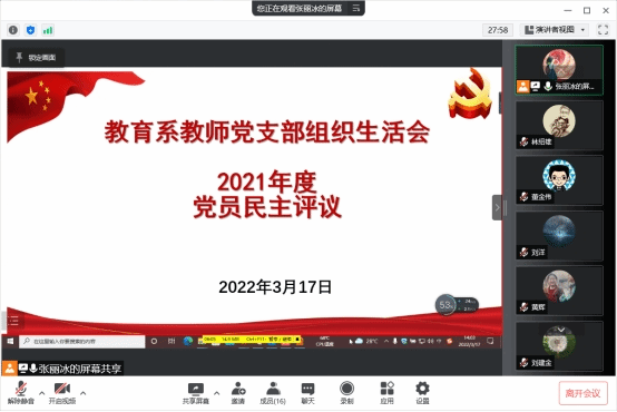 3月17日下午,伟德国际1946教育系教师党支部通过腾讯会议线上召开支部组织生活会和党员民主评议会。学院党委书记林绍雄出席会议并予以指导,支部全体党员在线参加,会议由支部书记张丽冰主持。