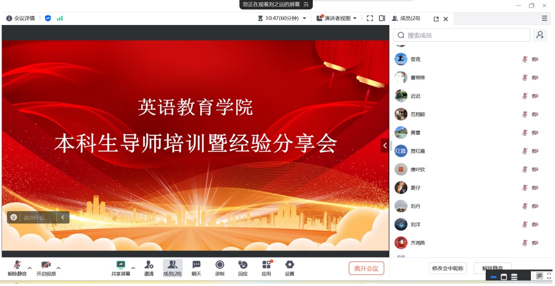 11月25日晚,伟德国际1946通过腾讯会议线上举行本科生导师培训暨经验分享会。会议由教育系主任刘之远主持,学院三十余位本科导师参加会议。