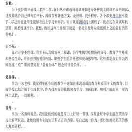 【编者按】疫情就是命令,防控就是责任,战“疫”打响后,全体“英教人”以实际行动不断书写战“疫”中的“英教好故事”。为全面贯彻“停课不停教、停课不停学”要求,统筹推进疫情防控和教育事业发展,完成好特殊时期的教育教学任务,教育学院教师们不断创新教学手段和教学方式,严把教学内容关,加强在线教育教学的组织和培训,确保教学进度和学习质量,同时发挥课程思政积极力量,激发广大师生爱党爱国爱社会主义热情,推动网上授课提质增效。即日起,院网特策划推出“‘疫’线教育”系列报道,记录和讲述“英教人”抗击疫情的使命担当和“课堂革命”的精彩故事。