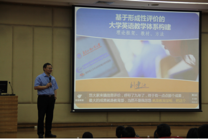 刘建达在开幕式致辞中对到场的省内各兄弟院校表示感谢。他在主题报告中,从理论框架到教材、到手段等方面详细介绍了基于形成性评价的大学英语教学体系构建。据了解,刘建达早在2010年已经开始研究并提倡形成性评价的教学理念,如今这一教学理念已经在我校的大学英语教学改革中实践多年,取得一定成效,并在全国逐步获得推广。