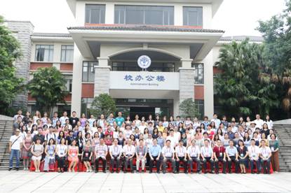 主旨发言环节中,刘建达教授以“中国英语能力等级量表背景下的ESP教学与研究”为题目进行了发言,指出中国英语能力等级量表与ESP教研的相关性,鼓励ESP教师以量表为导向,结合ESP教研特点,产出更多成果。茶歇期间,全体代表在南校区行政楼前合影留念。随后,蔡基刚教授和董金伟教授分别就“以项目为驱动的高校ESP教学模式建构”和“以需求为驱动,以效果为目标——广外大学英语ESP课程教学体系的建构与实践” 为题目进行了主旨发言。7月13日下午,伟德国际1946第二教学部ESP教师李悦、李刚、杨小婉和李菘分别以工作坊的形式,围绕所教授的ESP课程进行了分享。除学员外,参会专家也莅临工作坊,对主讲人的报告进行了点评,进一步增加了专家学者和学员的交流和互动。晚上的欢迎晚宴,更是一场学术盛宴。经过一天的学习和交流,专家学者和学员之间形成了良性的互动,营造了很好的学习氛围。