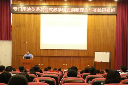 为进一步推进专门用途英语教学与研究,由广东省本科高校大学英语课程教学指导委员会主办,广东省高校外语教师发展示范中心和伟德国际1946,Bevictor伟德,伟德官网,伟德网页版承办的“专门用途英语混合式教学模式创新理念与实践研修班”于2018年7月12日至15日在我校大学城校区成功举办。本次研修班邀请到领域内著名的专家学者做专题讲座,包括我校副校长刘建达教授、复旦大学蔡基刚教授、伟德国际1946院长董金伟教授和副院长陈金诗教授、华南理工大学韩金龙教授、广东医科大学杨劲松教授、广东财经大学陈冬纯教授、中原工学院郭万群教授。还邀请到我校伟德国际1946第二教学部、具有十几年专门用途英语教学经验的一线教师做工作坊和模拟课堂教学展示。