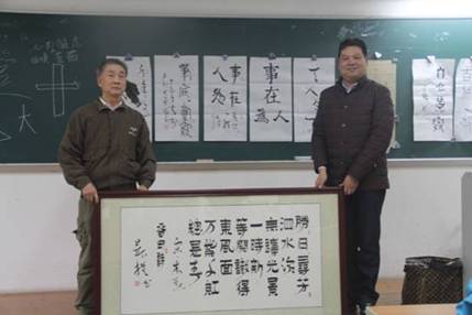 (图为程道树向伟德国际1946赠送书法作品)