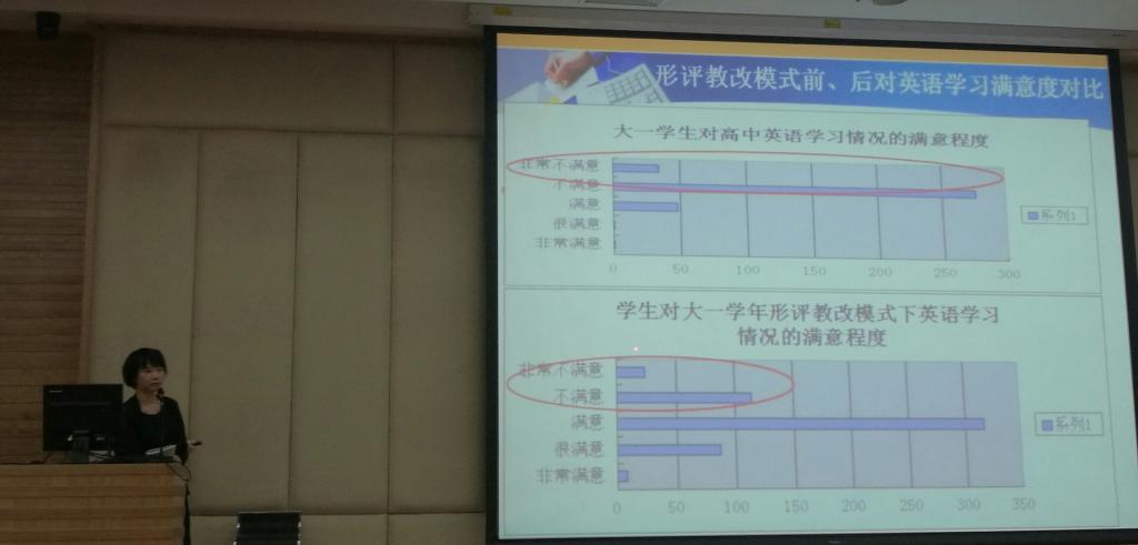 梁丽老师从教改实践对学生的影响方面进行了汇报。通过分析学生的调查问卷发现,学生对形成性评估的教改和实践表现出很高的满意度。在形成性评估课程币激励机制下,学生在课堂上的表现显得更加积极,如主动举手发言。从学生在留言板的反馈中可以看出,大部分同学对形成性评估对教学实践持积极肯定的态度。