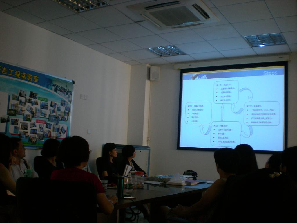 接下来杨满珍老师、杨敏老师、林慧华老师及吕剑涛老师从不同的角度分享了教学改革经验。杨满珍老师总结了过去一年大学英语形成性评估教学实践的成果并对未来进行了展望。她从理论、政策及学院支持等背景入手谈形成性评估教学实践的必要性、可行性和重要性,并详细介绍了该教学实践的实施步骤。她认为该教学实践迄今收到良好的效果,促进了学生的学习积极性及提高了学生的自主学习能力,教学平台日趋完善,也为教师创造了科研平台,她同时也指出了还有待改善的方面,如细化教学目标、完善网络技术、加强对教学实践理论层面的总结凝练等。杨敏老师分享了信息学院的教学经验,特别是对相对枯燥的科普类教材的教学处理。她总结了团队成员在教学方面的创新,并认为老师间互相借鉴学习对促进教学的发展有很大的帮助。