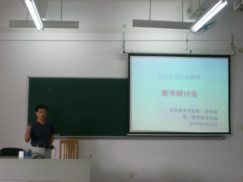 9月17日上午,伟德国际1946第一教学部暨第一教学部党支部举行了2015-2016学年度教学研讨活动,活动由系主任郭进军老师主持,出席本次研讨活动的有学院吴岩副院长及第一教学部全体教师。本次活动的意义在于以《大学英语课程教学要求》为指导,贯彻学院《大学英语课程2015教学计划》,提高“综合英语教学团队”的教研和教学水平。结合师德建设主题教育月活动,立足本职岗位,踏实努力工作,为大学的培养目标而努力。