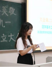 组织部黄晓君作为新成员代表发言,诚挚感谢一路帮助大家的师兄师姐们,她表示团学是学校连接学生的纽带,作为团学一员,拥有的不仅仅是荣誉,更多的是责任和担当,她向全体工作人员提出倡议:第一,学会与他人合作,向榜样看齐;第二,热忱对待工作,严格要求自己;第三,学会时间管理,在学习上脚踏实地,在工作上认真负责。