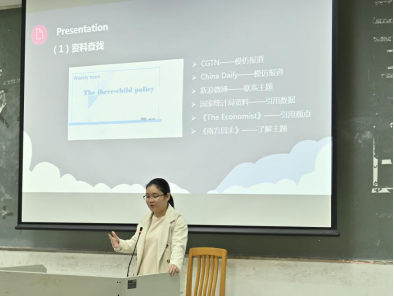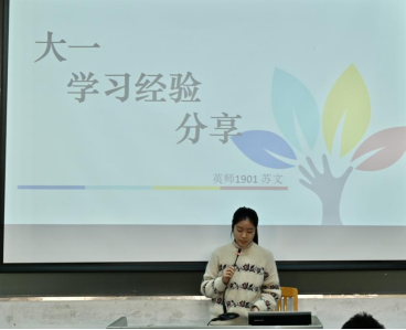李沂姗从课堂英语学习和生涯规划两个方面给同学们分享她的学习经验。在课堂英语学习方面,她认为,我们应该从多角度多渠道去收集与运用资料,自信认真地去对待每一次pre;在生涯规划方面,她鼓励我们多去尝试,在实践中逐渐找到适合自己的路;放长眼光,根据自己的职业规划去选择适合自己的社团部门以及实习。