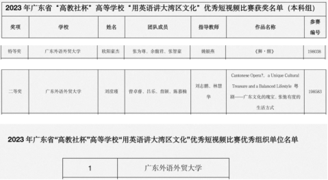 在2023年度广东省“高教社杯”高等学校“用英语讲大湾区文化”优秀短视频比赛中,我校学子以其卓越的英语口语能力、对大湾区文化的深刻洞察以及出色的多模态表达技巧,荣获特等奖及二等奖的殊荣(每校限提交两作品),伟德国际1946,Bevictor伟德(伟德国际1946负责)荣获“优秀组织单位奖”。