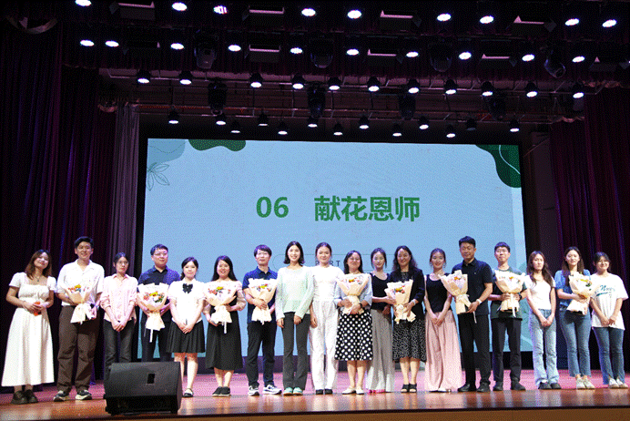 紧接着,大屏幕缓缓播放由21级班委精心准备的视频和教师们的寄语。一帧帧画面,记录着大学4年生活的点滴,与师生们共同成长的痕迹,字字句句凝聚着对毕业生最殷切的期盼与最真挚的祝福。毕业生代表手捧芬芳花束,走向朝夕相伴的老师们。鞠躬致谢,将千言万语化作对师恩的深深敬意。当悠扬的毕业旋律在礼堂回荡,师生们执手相拥,合影留念。