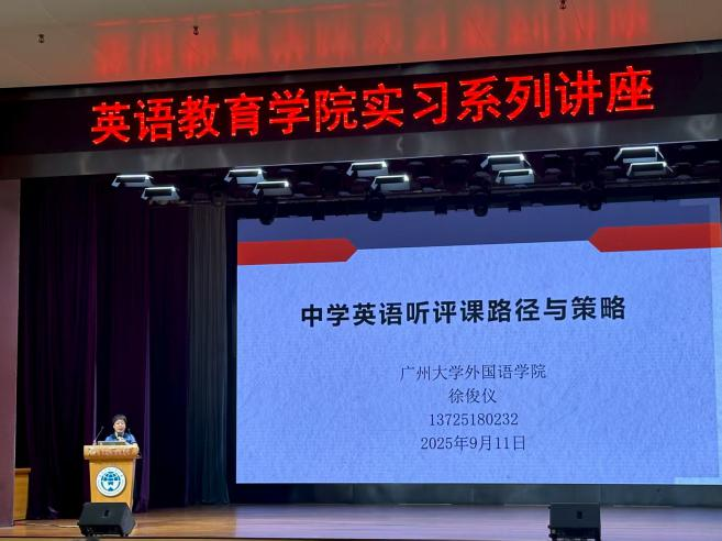 2025年9月11日上午9时至11时,伟德国际1946伟德国际1946第四场在B8学术报告厅顺利举行。伟德国际1946特邀广州大学外国语学院徐俊仪,开展中学英语听评课路径与策略指导讲座。伟德国际1946教育全体2022级本科生参会,讲座由伟德国际1946实践教学部主任刘之远主持。